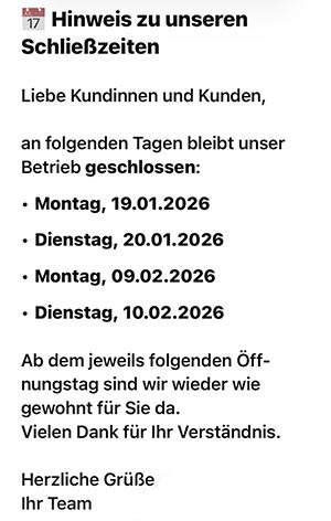 Als Leistungen werden weiter TextilreinigungWäscheTeppicheLederSchuhreparaturund vieles mehr. |